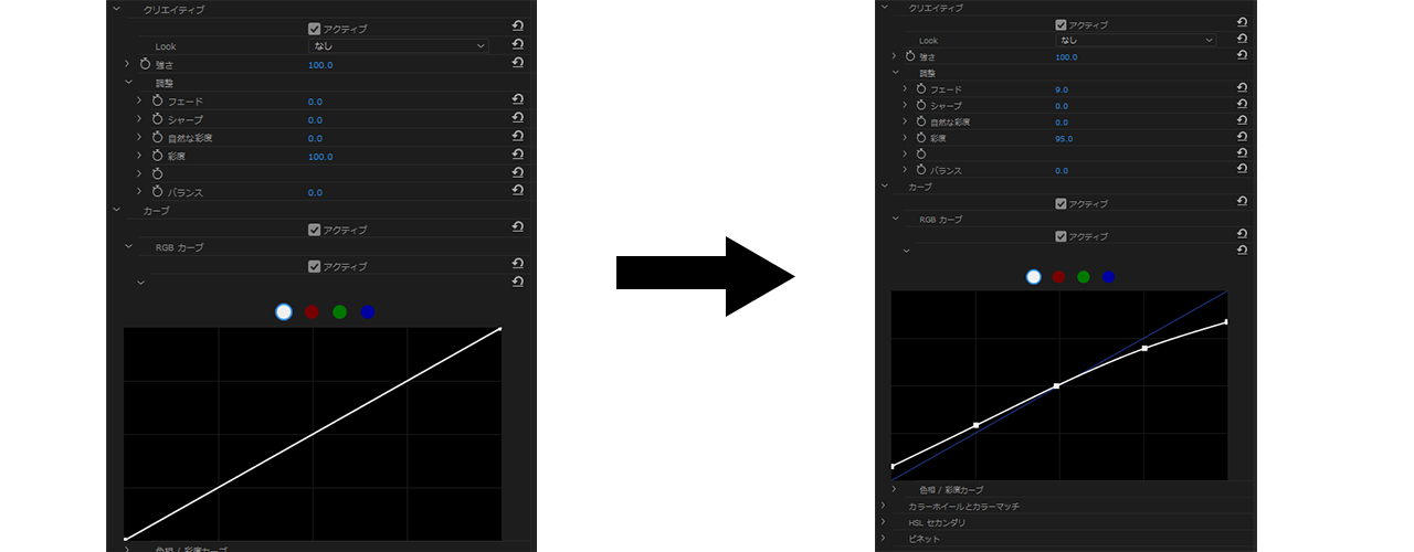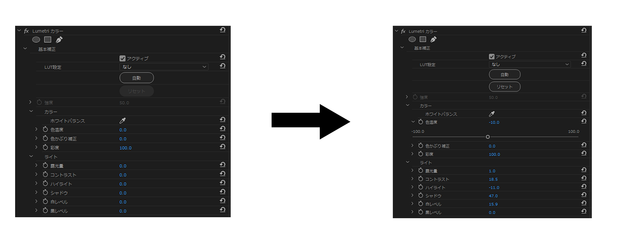 映像の雰囲気や撮影環境によって、どの項目をどれくらい調整するかは変わってきます。