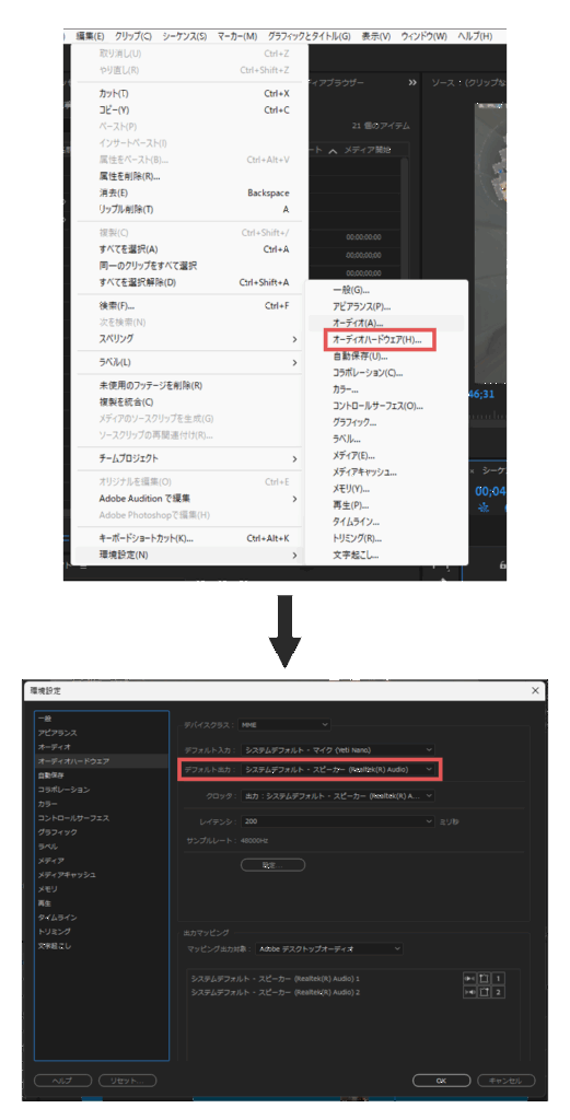 原因:入出力デバイスの設定不一致・ドライバ競合