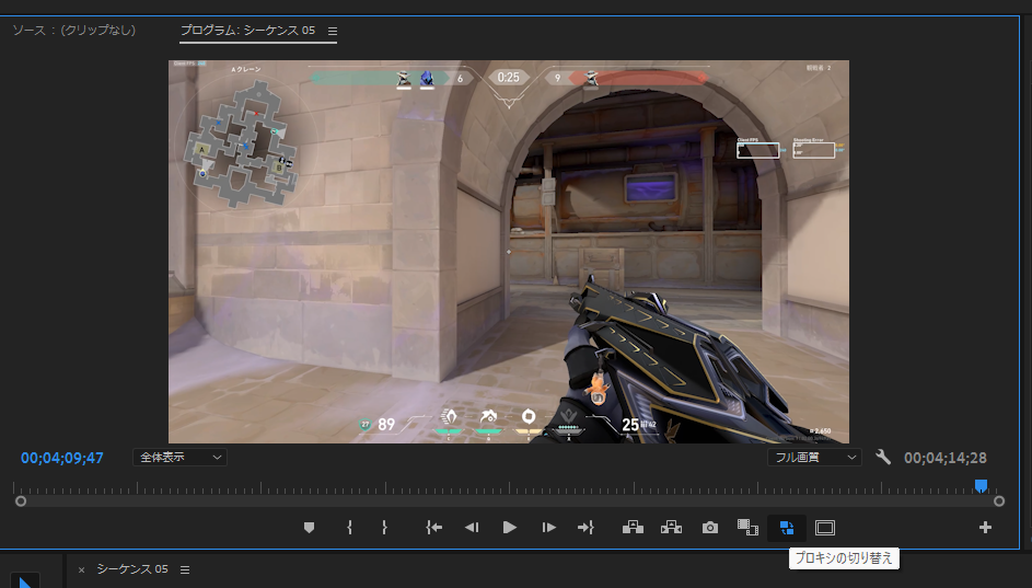 プロキシを使用したい時はプログラムモニターの下にある「プロキシの切り替え」を押下して、青くなればOKです!